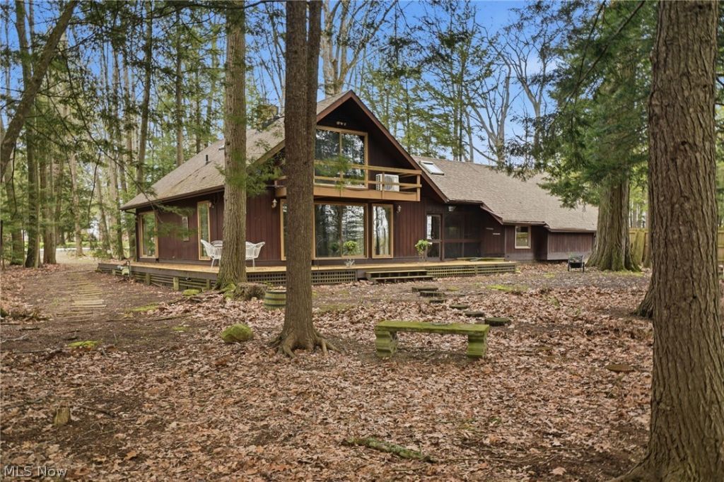 Magical, woodland retreat nestled along the edge of the Ashtabula River. The .5 acre lot boasts old growth oaks, beech & ancient hemlocks, breathtaking view of the River and tranquil sound of the waterfall. The cedar sided cape cod offers great room w/gas fired stone fireplace, built-in dry bar, oak flooring throughout, lots of sliding doors & windows allowing natural light to stream in. Galley kitchen with new butcher block counters, live edge wood breakfast bar, ss appliances. Main level bedroom has convenient attached bonus room for media/reading/office, centralized laundry and main bath. The second story houses 2 bedrooms and full bath w/skylight. Lots of closets and walk in attic space for storage. New H2O Tank, 4 newer mini splits for zoned Heat and A/C2, WIFI controlled 'Nest' thermostat for radiant heat system, car attached garage, overhead door opener, workbenches, more storage, relax in the cool breezeway. Huge 40' x 10' wrap around composite deck for outdoor living and entertaining, large wooded yard, river rock trails and driveway. Cedar fencing runs along the side boundaries for added privacy. Come - connect with nature - live within a forest - yet near all city amenities. A truly unique place!
