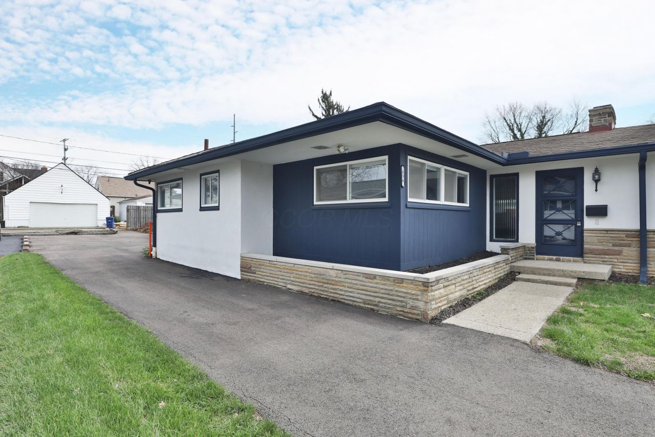 Rare Opportunity to own a beautiful Mid-Century Modern ranch in Central Eastmoor--Well maintained and full of original character-offering bright, airy living & some modern updates. Set along a quaint one-way street, situated on a hill, this thoughtfully preserved home features unique original fixtures & hardwood floors throughout. Step into a spacious foyer with striking red brick paver flooring that leads to a sunken living room anchored by a fireplace & framed by large picture windows on 3 walls--an ideal space for both relaxing & entertaining. Turning the opposite direction off the spacious foyer is a generous formal dining room with built-ins reminiscent of this style home. The large eat-in kitchen has abundant counter space & classic mid-century details with a view to the North from kitchen sink & to the backyard (East) from the dinette. This home offers 2 main bedrooms, including a primary suite with its own bath, plus a large family room/third bedroom/office with built ins and a closet for flexible living arrangements. The hall bath is practical & well-appointed with dual sinks & a walk-in shower. The full clean basement expands your possibilities with tall ceilings in 4 large rooms: a laundry room, a partially finished family room with a second fireplace, plus 2 extra rooms for workshop, storage or future living space--plumbed for an additional bathroom. Loads of closets and built-in storage throughout keep home organized & clutter free. Additional highlights: attached 2 car garage connected via a bright 3-season room with sliding doors to the patio, driveway and yard, partially fenced yard, all updated wiring, and new gutters around the home. Exterior recently painted in the last year. This is a rare opportunity to own a true mid-century gem that blends original finishes & characters with meaningful modern improvements. Easy access to Bexley, Main Street, restaurants, entertainment, airport, public transportation, downtown, highways, hospitals