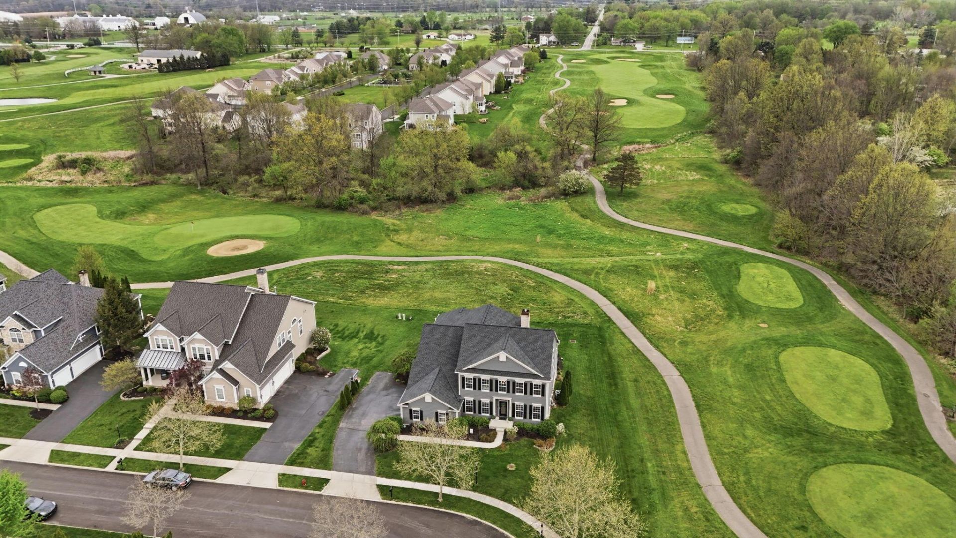 Nestled along the prestigious New Albany Links Golf Course, this exquisite five-level split residence offers unparalleled living for the discerning buyer. Perfectly positioned between the tee box of hole #4 and the landing area of the #3 green, it commands sweeping views of the fairways and greens--creating a serene golf sanctuary from your deck and patio.Inside, soaring ceilings and generous windows fill the home with natural light. The expansive great room features a cozy double-sided (into eating space) fireplace and rich wood flooring, ideal for intimate gatherings or grand entertaining. The oversized dining room hosts memorable dinner parties, while the private den with glass French doors provides an elegant home office.The gourmet kitchen shines with a large island, gas cooktop, and stainless steel appliances including double ovens, refrigerator, and dishwasher. Upstairs, the lavish primary suite offers a spacious bath and walk-in closet. Three additional bedrooms provide flexibility: two share a stylish full bath, and one has its own en-suite. The home includes four bedrooms, three full baths, one half bath, and a three-car garage.The finished lower level with large egress windows invites relaxation and entertaining, the unfinished basement with egress to patio area offers ample storage and is plumbed for a future full bath.This home has been meticulously updated, including: new roof (2024), new A/C (2024), six new windows (2025), new refrigerator and gas cooktop (2025), complete exterior painting with trim replacement (2016 & 2025), interior painting (2026), new deck, garage door and opener, plus refreshed kitchen cabinets and staircase.Around the bend lies the New Albany Links Clubhouse golf course, tennis courts, and vibrant social life. Tree-lined sidewalks, the community center, excellent schools, and easy highway access complete this coveted lifestyle on one of central Ohio's most desirable communities.